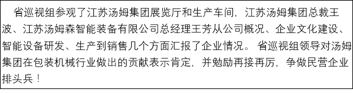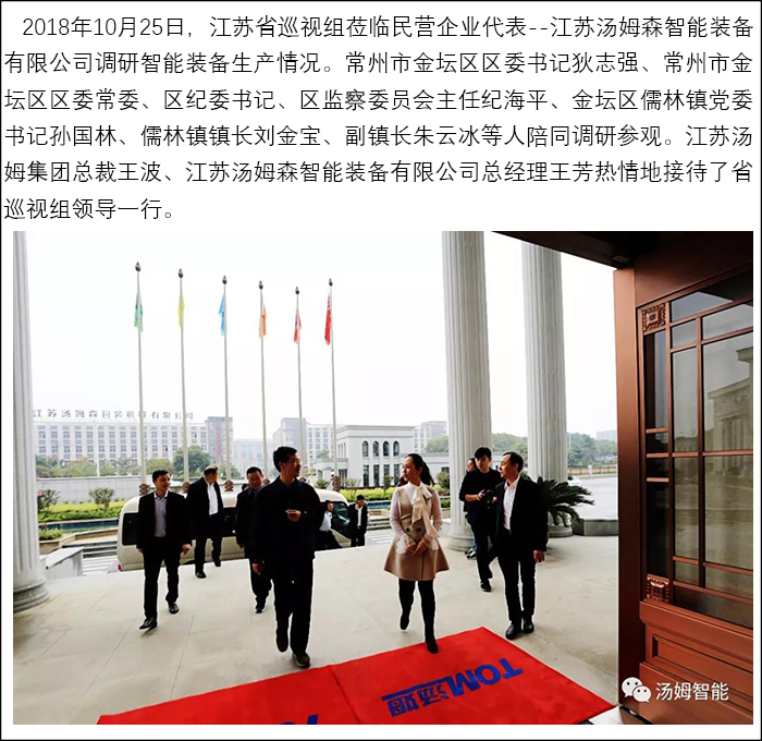 江蘇省巡視組蒞臨民營(yíng)企業(yè)代表--江蘇湯姆集團(tuán)調(diào)研參觀!