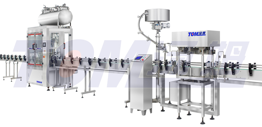 The filling machine in this filling line adopts tank pressure filling, with advantage of high filling accuracy, fast filling speed, stable performance and fast volume adjusting, it is an ideal equipment for 1L-5L packaging filling.