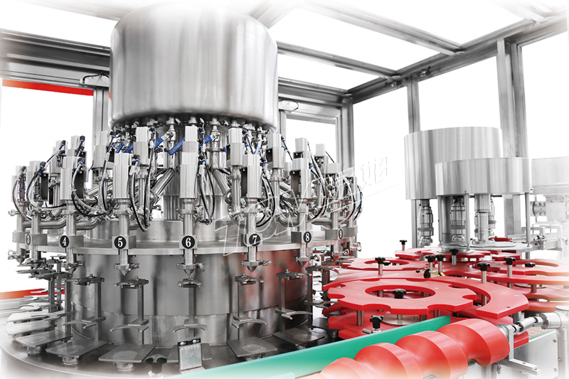 1、連續灌裝旋蓋無間隙,效率高,無卡瓶,無濺料;